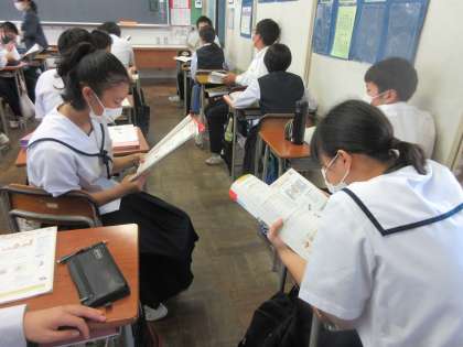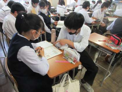英語の授業です。 ペア学習で、「丁寧なお願い」の練習をしました。