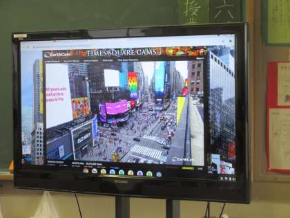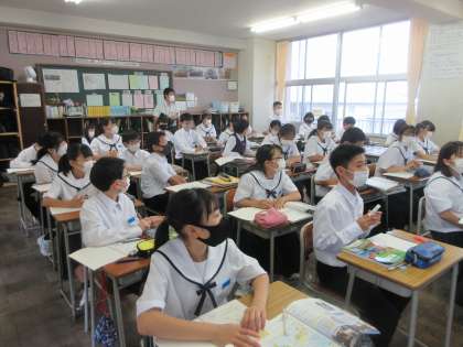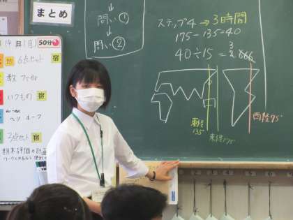 社会の授業です。 他国の日付と時刻を求めました。教育実習生が、頑張っています!!
