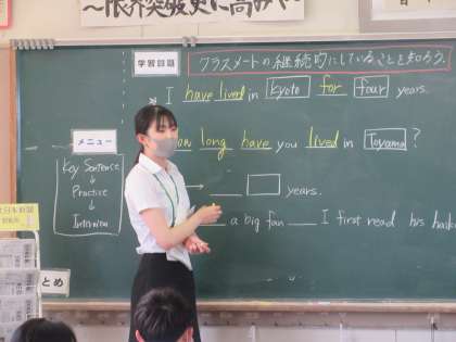 英語の授業です。 教育実習生が研究授業を行いました。現在完了を学習しました。