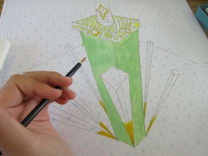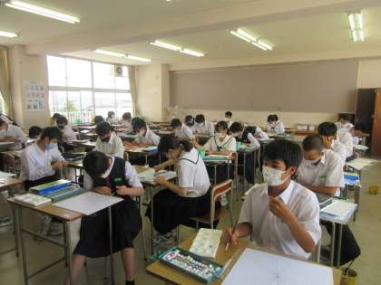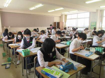 美術の授業です。 黙々と色付けを行っています。