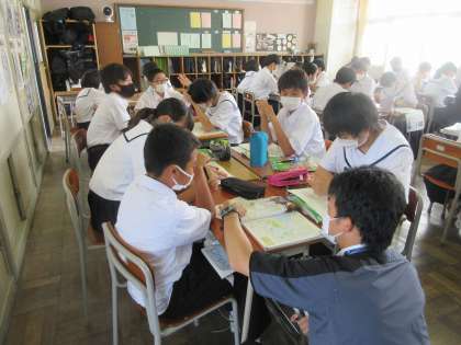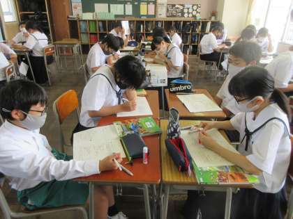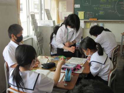 社会の授業です。 他国の日付や日時を求めました。教育実習生、頑張っています。