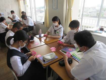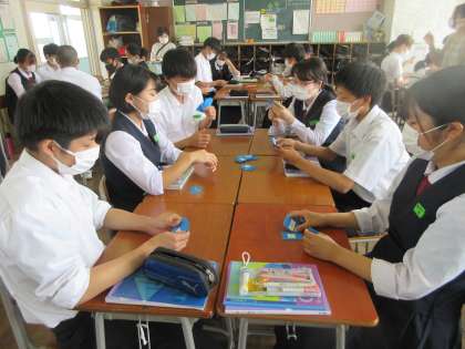 数学の授業です。 平方根を使って「ばば抜き」をしました。