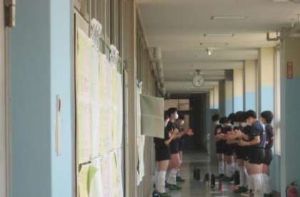廊下では、かけ声の確認です。