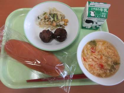 今日の給食 公開日 2021/06/21 更新日 2021/06/21 給食 なかなか食べ応えのある、ミートボールです!! 米粉コッペパン 牛乳 ミートボール ひよこ豆のオリーブオイル炒め 卵とレタスのスープ