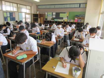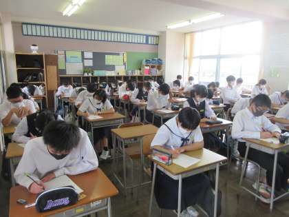 国語の授業です。 漢字テストです。