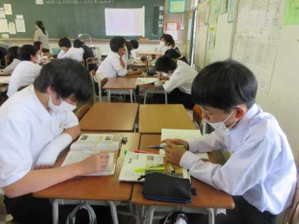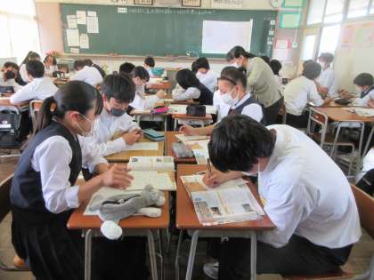 社会の授業です。 「道」は都市や産業にどのような影響を与えたかを学習しました。