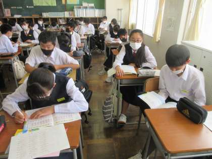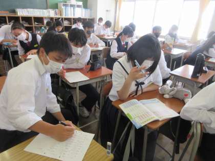 国語の授業です。 漢字練習中です。このあと、漢字テストです。