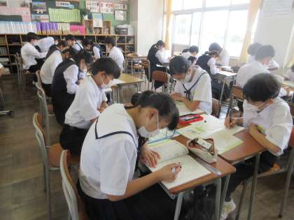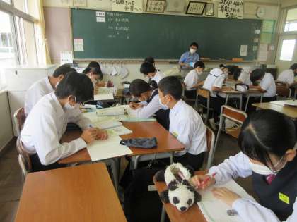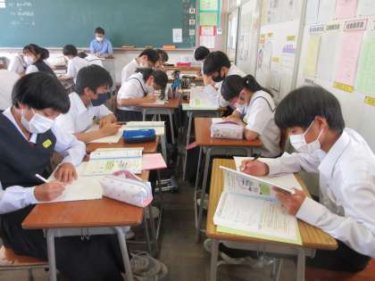 数学の授業です。 いろいろな連立方程式の練習問題に取り組みました。