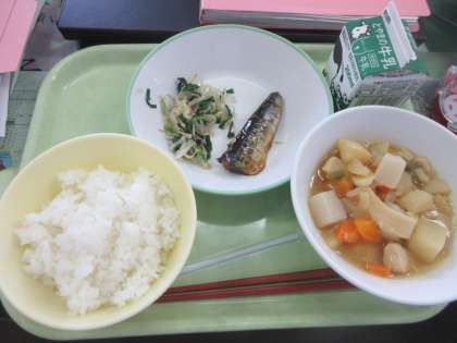 鶏肉と野菜のうま煮は、野菜の栄養たっぷりです!! ごはん 牛乳 塩ナムル いわしの梅煮 鶏肉と野菜のうま煮
