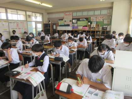 保健体育の授業です。 犯罪被害の環境要因とその対策を学習しました。