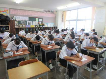 国語の授業です。 まず、漢字テスト!!