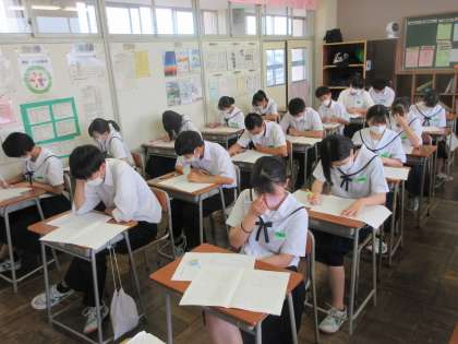 1限から5限まで、3年生は確認テストを行いました。