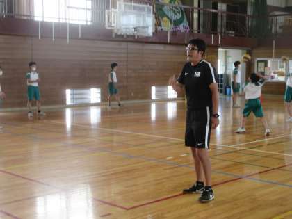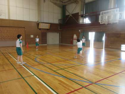 オーバーハンドパスとアンダーハンドパスの練習です。 「ボールの行方は、ボールに聞いて・・・。」