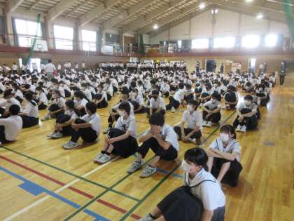 県選手権大会、県民体育大会、そしてコンクールに出場する選手等の壮行会を行いました。 ソフトボール部です。