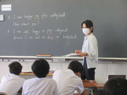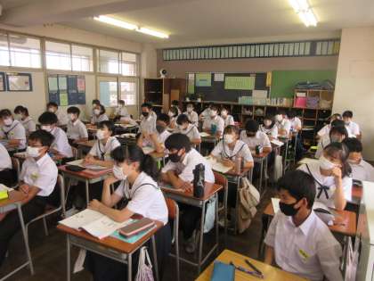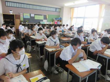 英語の授業です。 集中しています。視線が一方向です。