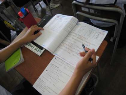 英語の授業です。 1学期に学んだ英単語について振り返りました。