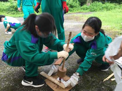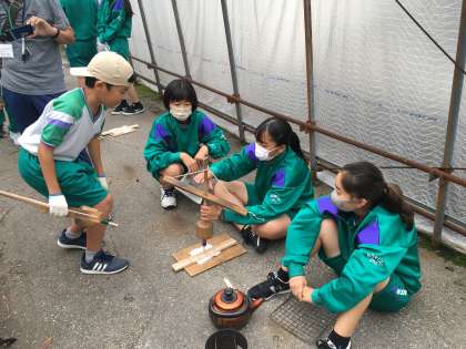 1学年 校外学習 火起こし体験 公開日 2021/07/12 更新日 2021/07/12 第1学年 火起こし体験 力を込めて火を起こそうとしますが…、なかなか難しいようです。何か、コツがあるのでしょうか?