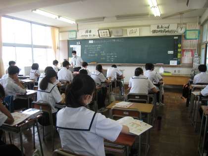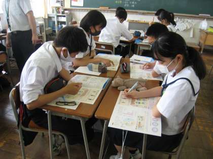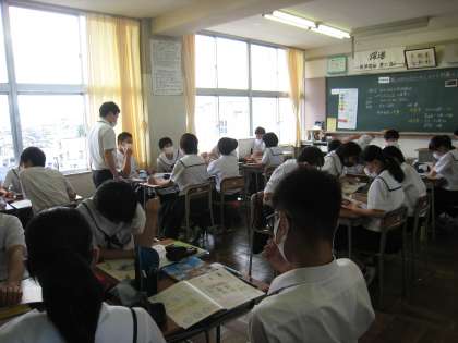 社会(公民)の授業です。 税のしくみと問題点について考えました。 資料を見て話し合いました。