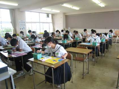 美術の授業です。 すばらしい集中力です。