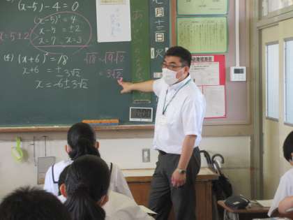 数学の授業です。 平方根の考えを使って問題を解きました。