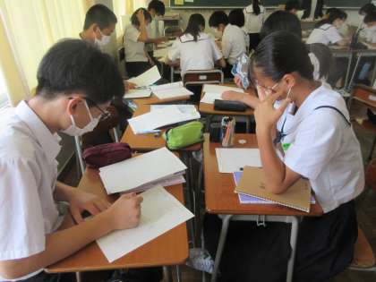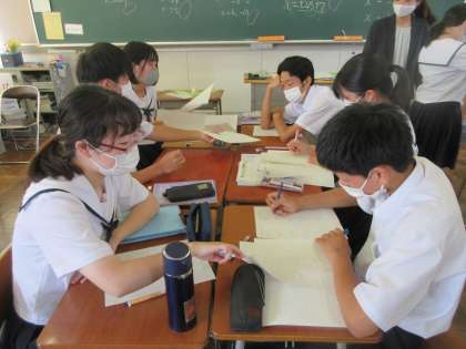 数学の授業です。 平方根の考えを使って問題を解きます。