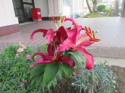 おはようございます!!7月15日(木) 公開日 2021/07/15 更新日 2021/07/15 北中NEWS 今日から、保護者懇談会です。お忙しいこととは思いますが、よろしくお願いします。 3限に、体育大会結団式を行います。 下校完了時刻は、15:00です。 職員玄関横に咲いたユリです。見事な花です!!