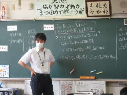1−3 公開日 2021/07/15 更新日 2021/07/15 第1学年 理科の授業です。 学習課題「目に見えない気体には、どのような性質があるのだろうか」のもと、酸素・二酸化炭素・窒素・水素・アンモニア等の性質について学びました。