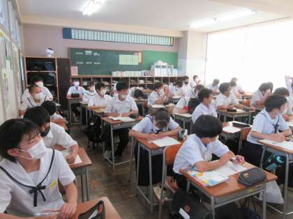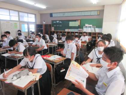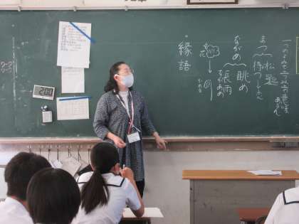 国語の授業です。 短歌の表現技法を学習しました。