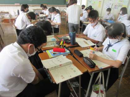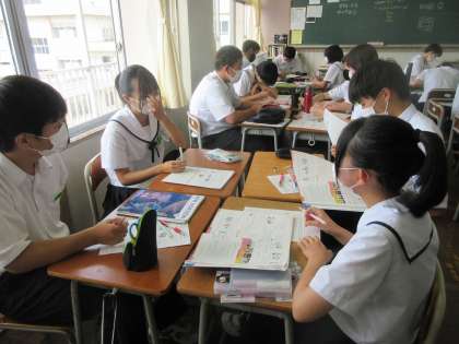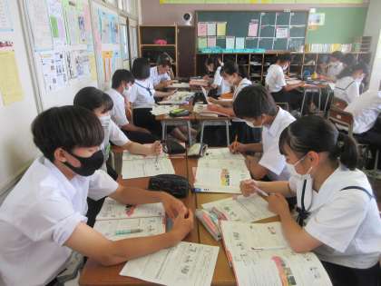 英語の授業です。 得意なことや苦手なことを伝え合いました。