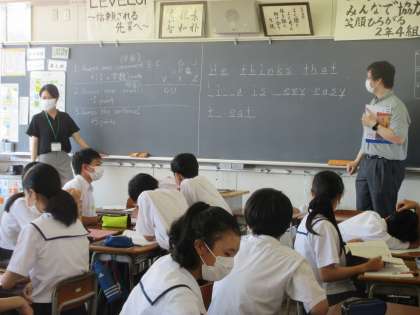 英語の授業です。 ALTのレイ先生と、単語のクイズです。