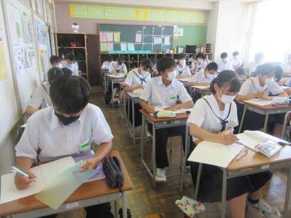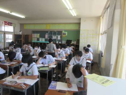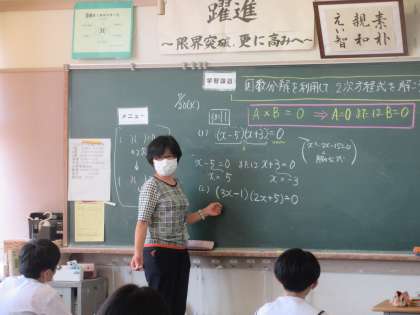 数学の授業です。 因数分解を利用して、2次方程式を解きました。
