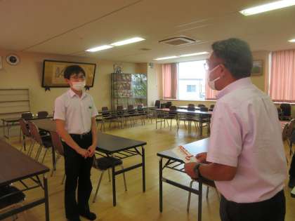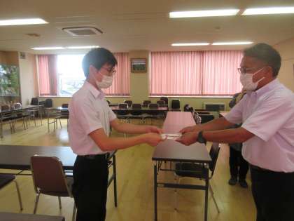 8月3日から始まる北信越大会と8月19日から始まる全国大会に出場する生徒に、部活動育成基金から激励費を渡しました。