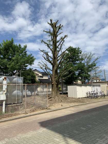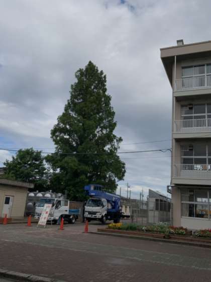 校舎より高くから、北部中学校を見守ってくれていたメタセコイアの木ですが、高くなりすぎて危険なため、高さを半分にし、広がった枝を刈り込んでいただきました。