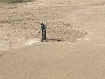 毎日、暑い中、用務員さんがグラウンドの草刈りをしてくださっています。 機械の動いた跡が分かります。芸術的!