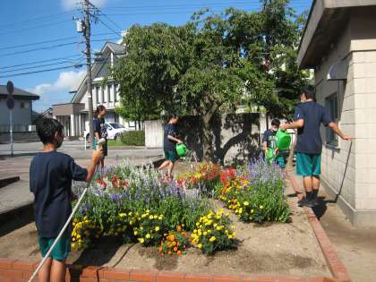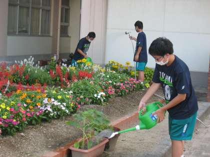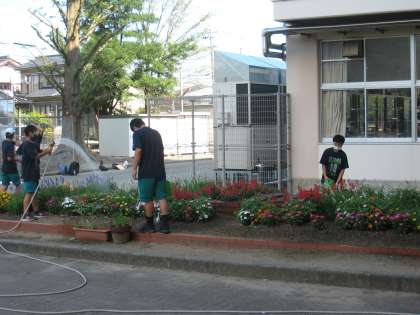 水やり 公開日 2021/08/05 更新日 2021/08/05 北中NEWS 今日は、陸上競技部の生徒が水やりをしてくれました。 「僕、やります!」 「じゃあ、じょうろ取ってこよう!」 積極的です。