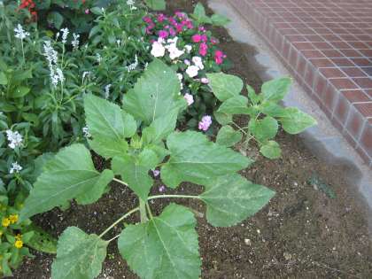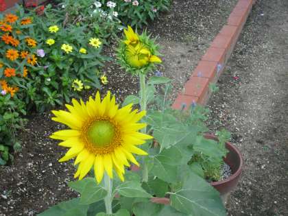 ひまわりの花が大きく開きました。次に咲こうと待っている花もあります。