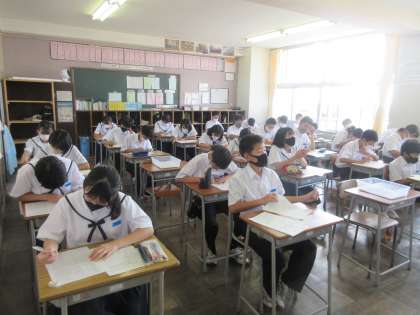 学活の時間です。 アンケートに取り組みました。 「わくわくをたくさん味わえる2学期に!!」
