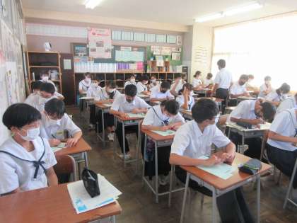 学活の時間です。 2学期は、「尊敬される先輩」を目指しましょう!!