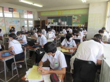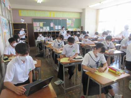 学活の時間です。 「課題が終わった人から、クロムブックの確認をしてね!!」