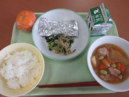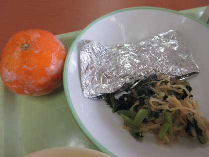 さばの銀紙焼きの味噌だけで、ごはんが進みます。 ごはん 牛乳 さばの銀紙焼き はりはり和え 冬瓜の吉野煮 冷凍みかん