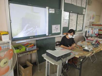 美術の授業です。 木彫フォトフレームをつくります。