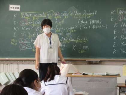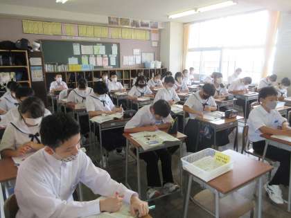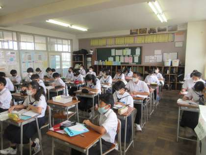 英語の授業です。 何が好きかたずねたり答えたりしました。