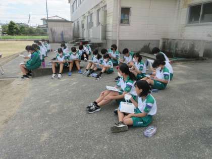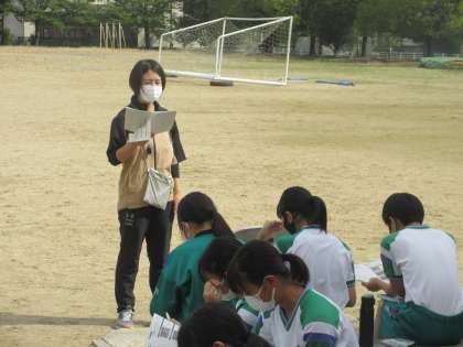 保健体育の授業です。 リレーのバトンパスを練習します。