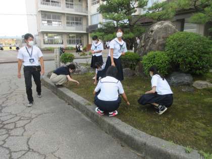 花壇以外の前庭もきれいにします!! 「はい、ご褒美シール!!」