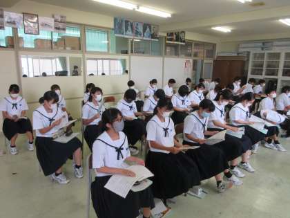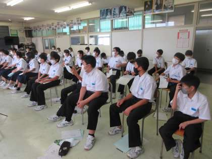 音楽の授業です。 合唱曲の練習です。「音符を見て歌いましょう!!」