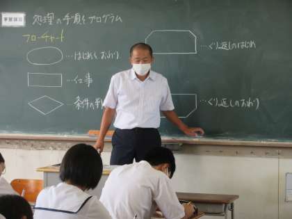 技術・家庭科の授業です。 情報処理の手順とプログラムを学習しました。