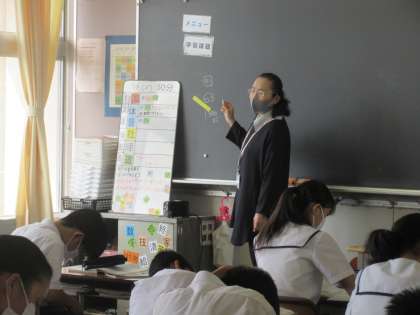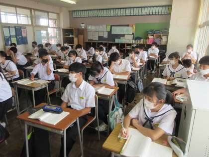 国語の授業です。 「盆土産」を学習しました。 「『えんびフライ』って、おもしろい。」