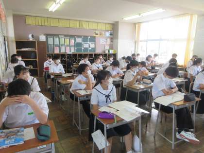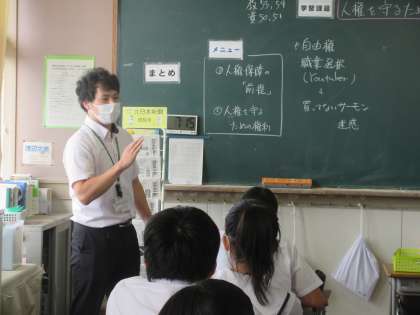 社会の授業です。 人権を守るためにどのような権利が必要かを学習しました。