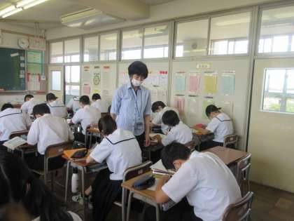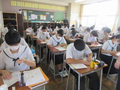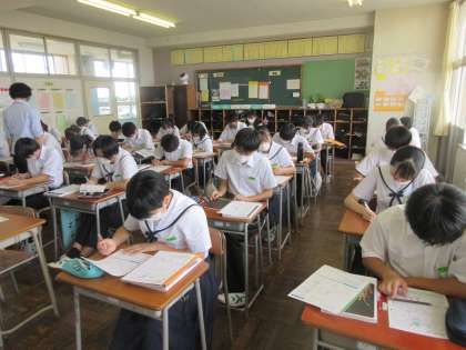 理科の授業です。 生物の成長と生殖の復習プリントに取り組みました。