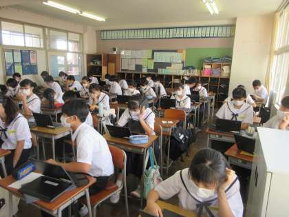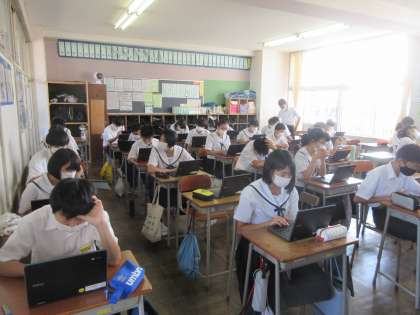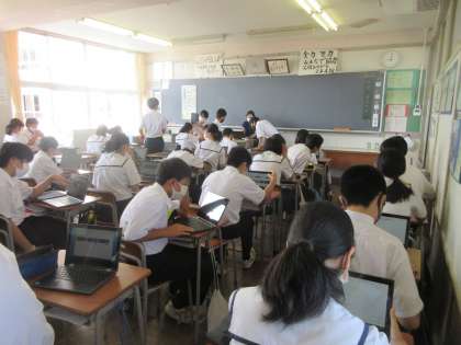 学活の時間です。 クロムブックを使って、課題に取り組みました。